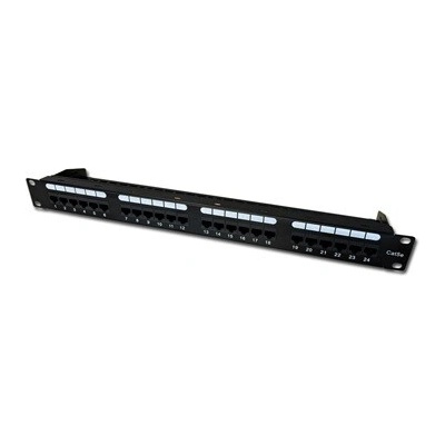 patch panel 1U Konektor(y): RJ-45 Podporované kabelové typy: Cat5e Barva: Černá Připevnění: Instalace do racku Kapacita racku: 1U Šířka: 445 mm Výška: 44,5 mm Hloubka: 102...