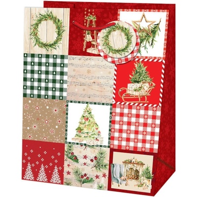 Taška dárková Medium Vánoční patchwork červená/zelená 19 x 10,2 x 23 cm