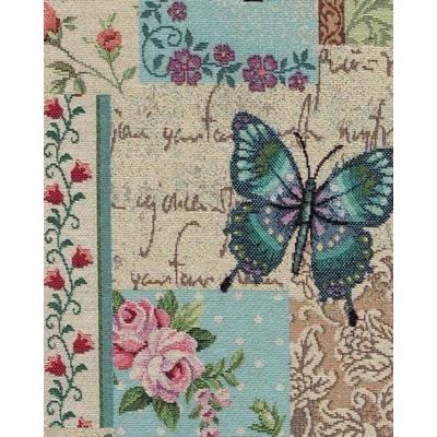 Gobelínová dekorační látka NATALI, motýlí patchwork. Složení dekoračky 60% polyester, 40% bavlna. Tkanina má šířku 280 cm. Dekorační látky jsou vhodné na podsedáky židlí, lavic,...