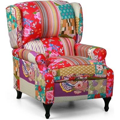 - moderní čalouněné křeslo vyrobeno v motivu patchwork - dřevěná kostra, nohy z březového dřeva v černé barvě, látka: bavlna + polyester - využití: ložnice, haly, předsíně,...