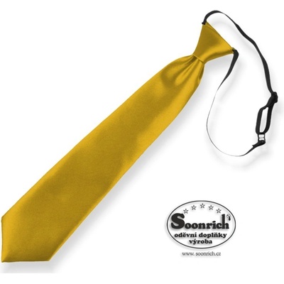 kravata dětská zlatá na gumičku, materiál: 100% polyester - satén, délka: 30 nebo 40 cm, šířka: 5 cm, obvod gumy: 45 cm, vzor: jednobarevný, barva: zlatá , Dětská kravata je...