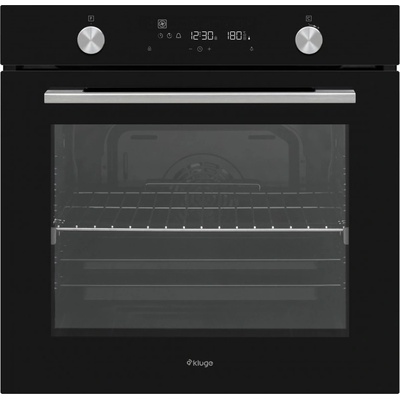 Multifunkční horkovzdušná trouba, objem 75l, en. třída A, provedení černé sklo, nerezové madlo a 2 x nerezové otočné voliče funkcí, dotykový LED displej v bílé barvě Visio...