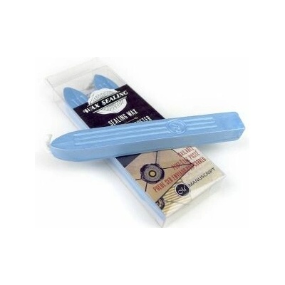 Světle modrý pečetní vosk s knotem. Sada obsahuje 3 ks.