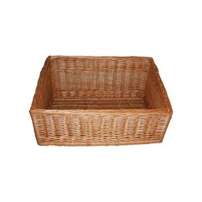 \nProutěný pultový koš určený na různé zboží.\nRozměry : 45 x 40cm, výška zadní části koše 25 cm, výška přední části 15 cm. Materiál : proutí.\n