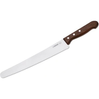 Nůž na pečivo G 8261 je velkou variantou oblíbeného univerzálního nože Giesser G 8365. Rozdílem je délka čepele a nýtovaná rukojeť ze dřeva Bubinga.Zoubkovaná čepelVyužijete na...