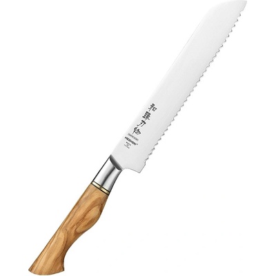 Perfektně vyvážený nůž na chléb a čepelí dlouhou 23 cm a s rukojetí z výběrového olivového dřeva.