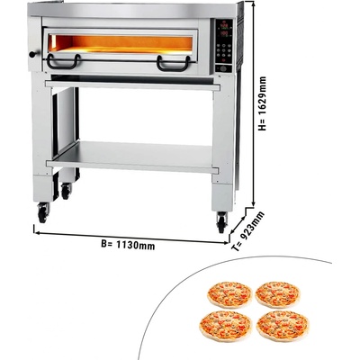 Jednokomorová pizza pec na 4 ks průměr 25 cm. Pizza pec pro malé prostory, kde můžete péct 4 kusů najednou. Spodní a horní ohřev samostatně regulovatelný. Komora dno hnivzdorný...