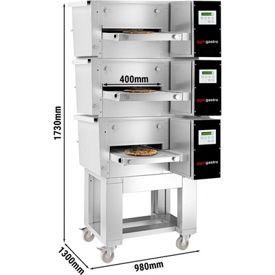 Rám s policí pro pec na pizzu Maxima Deluxe 6 x 30 cm 400V. Rozměry: Š1200 x D770 x V1115 mm