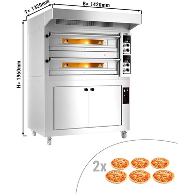 Pec na pizzu ZÁKLADNÍ XXL 66, HENDI, 2 komory , 400V/18000W, 1365x968x(H)745mm Přední část z nerezové oceli Pouzdro z oceli Izolace z minerální vlny Mechanické ovládání...
