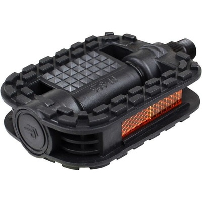 Pedály plastové, protiskluzová úprava - závit 9/16"; osa Fe - odrazky oranžové - 103 x 77,5 x 26 mm, váha 250 g