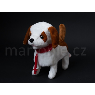 Pejsek chodící o velikosti cca 16 x 18 x 9 cm. Pejsek chodí a štěká. Napájení na 2 AA baterie (nejsou součástí). Rozměry balení cca 16 x 18 x 10 cm.