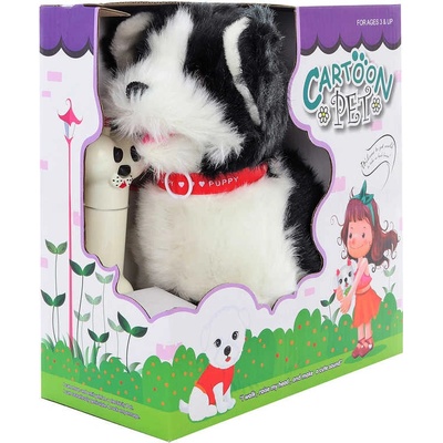 Pejsek chodící o velikosti cca 16 x 18 x 9 cm. Pejsek chodí a štěká. Napájení na 2 AA baterie (nejsou součástí). Rozměry balení cca 16 x 18 x 10 cm. Věk: 3+