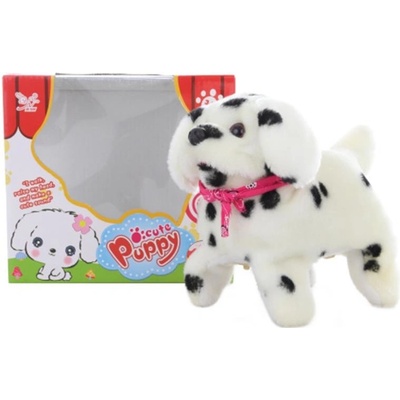 Pejsek chodící o velikosti cca 18 x 16 x 10 cm. Pejsek chodí, štěká a dělá salta. Napájení na 2 AA baterie (nejsou součástí). Rozměry balení cca 18,5 x 17 x 11...