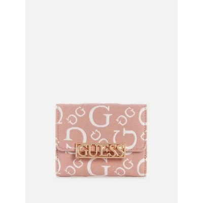 Dámská peněženka značky GUESS. - celoplošný vzor loga G - žakarová peněženka - kování ve světle zlaté barvě s předním emblémem loga - překlápěcí klopa se zapínáním na patent...