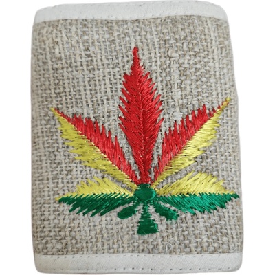 Konopná peněženka barvy natural s vyšívaným motivem konopného listu v rasta barvách