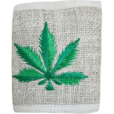 Konopná peněženka barvy natural s vyšívaným motivem konopného listu