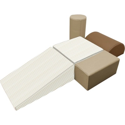 11dílná sada měkkých stavebních bloků se skládá ze dvou půlválců, dvou malých trojúhelníků, jednoho velkého trojúhelníku, jednoho malého půlválce, dvou obdélníků a tří čtverců....