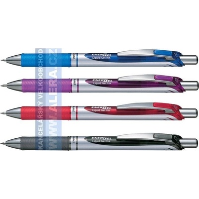 EnerGel s rychleschnoucí gelovou náplní. Elegantní moderní design. Kovový klip, mačkací mechanika. Pogumovaný grip pro pohodlné psaní. Barva doplňků odpovídá barvě náplně....