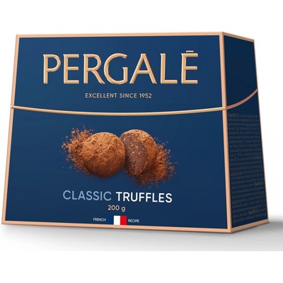 Pralinky Truffles v elegantní krabičce. Složení: rostlinný tuk (palmový), cukr, nízkotučný kakaový prášek (13%) , sušená syrovátka, kakaový prášek (1.8%), emulgátor(sójový...