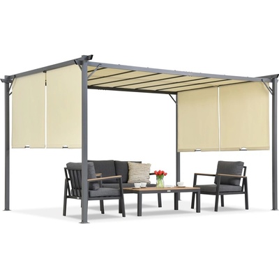 Terasová pergola Sevilla v krémové barvě o rozměrech 3x4 m se závěsy vám umožní užívat si venkovní prostor v pohodlí. Díky její jedinečné konstrukci můžete její použití...