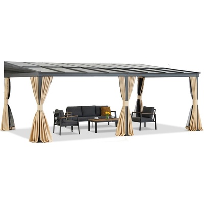 Hliníkový přístřešek na terasu Tarragona 3x6 m je možností, jak si vytvořit prostor, kde si můžete užívat venku bez ohledu na počasí. Díky béžovým závěsům a moskytiéře bude...