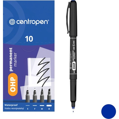 Centropen 2634 je pernamentní popisovač. ART. 2634 píše na neporézní povrchy. Centropen 2634 OHP Permanent má moderní desing s ERGO držením. Centropen 2634 odolává vodě a...