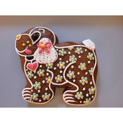 Medový perník s obsahem minim. 22% včelího medu je zdobený cukrovou bílkovou polevou a cukrářskou kakaovou polevou, může být ozdobený stříbrnou cukrářskou kuličkou. Velikost...