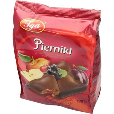 Pierniki 190g. Perníčky plněné ovocnou náplní máčené v kakaové polevě 190g Množství v kartonu: 12ks Složení: pšeničná mouka, ovocná náplň (23%) :[ zahuštěný jablečný protlak...