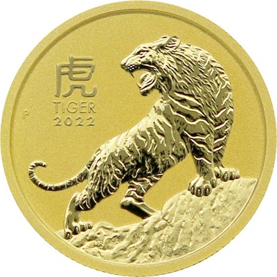 Zlatá mince z Lunární série III. Rok Tygra 2022. Celosvětově limitovaný náklad 30.000 kusů činí tuto minci velmi oblíbenou u sběratelů a investorů díky potenciálnímu zhodnocení...