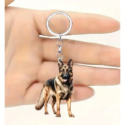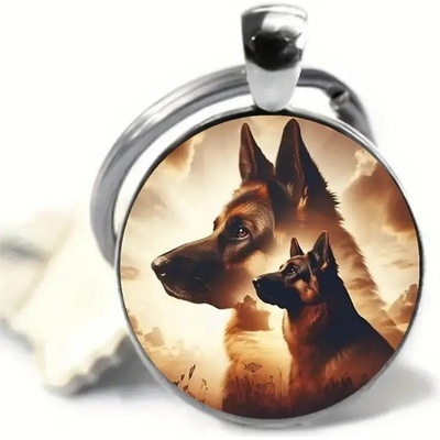 Krásný přívěsek na klíče se psem - německým ovčákem. Klíčenka s populárním plemenem německý ovčák je vhodná pro všechny milovníky psů. Na klíčence je velký a menší německý ovčák.