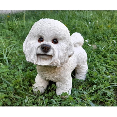 Věrohodná figurka pejska Bišonka Materiál: polyresin Rozměry : 26 x 23 cm Jde o dekorační předmět, není vhodné jako dětská hračka.