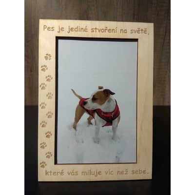 Dřevěný fotorámeček s psí tématikou. Rámeček je vhodný na fotografii 10 x 15 cm. Rámeček je možné pověsit na zeď nebo vystavit na poličku. Rámeček je dodávaný s již přilepeným...