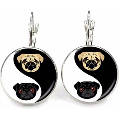 Náušnice se symbolem Jin Jang / Buldoček Zapínání: klasické zapínání - na klapku Průměr kola: 1,7 cm Materiál: zinková slitina + trvzené sklo