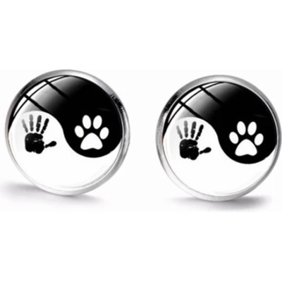 Stylové náušnice Jin Jang psí tlapky zapínání: závit rozmery: průměr kola: 1,3 cm materiál: kov + tvrzené sklo uvedená cena je za pár(2 kusy)