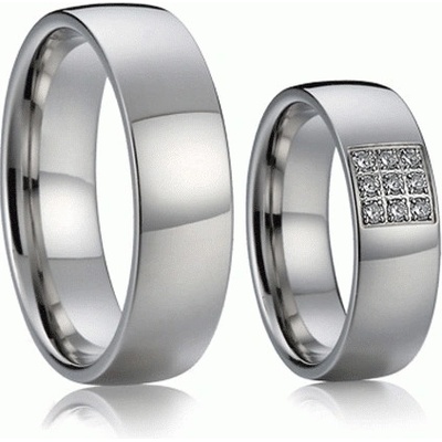 Luxusní ocelové snubní prsteny jsou díky svému jednoduchému zpracování praktické pro každodenní nošení. Prsteny jsou upraveny do vysokého lesku. Do dámského prstenu je vsazeno...