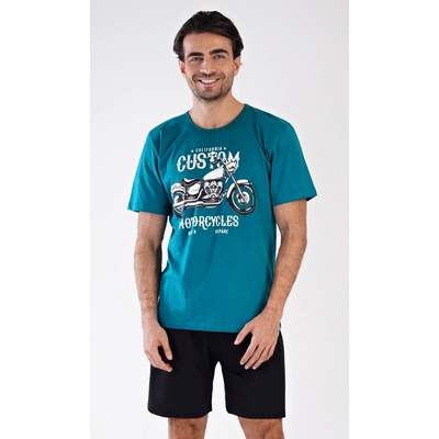 Pánské bavlněné pyžamo šortky Motocykl. Pánské pyžamo se skládá z trička s krátkým rukávem a krátkých šortkových kalhot. Na jednobarevném tričku s kulatým výstřihem je nápis...