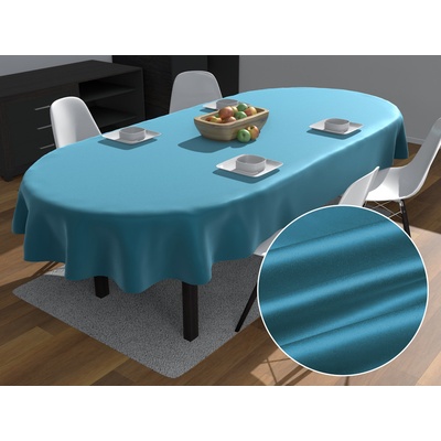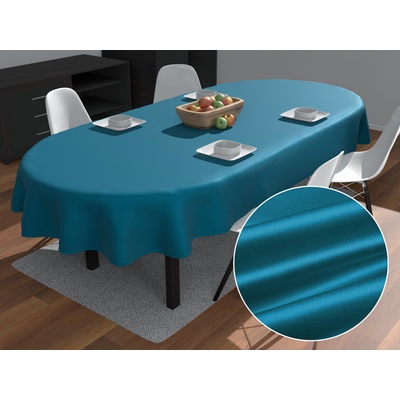 Oválný saténový ubrus na stůl v petrolejově modré barvě, ušitý ze 100% polyesterové látky Satén LUX. Vysoká pevnost a luxusní lesklý vzhled, to jsou hlavní přednosti této látky....