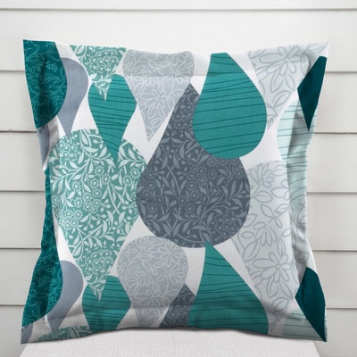 Bavlněný povlak na polštář se vzorem šedo-petrolejových kapek s ornamenty na bílém podkladu. Je ušitý z hustě tkaného 100% bavlněného plátna s certifikátem zdravotní...