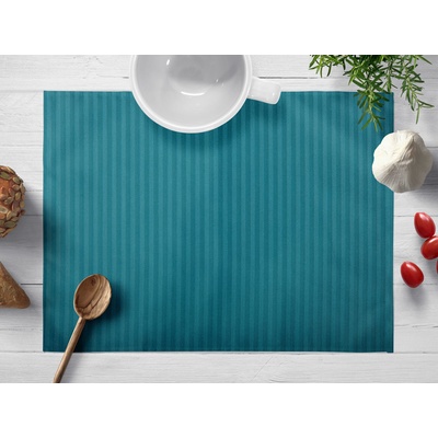 Damaškové bavlněné prostírání Atlas Gradl se vzorem střídajících se tenkých proužků o šířce 3 mm. Je ušité ze sytě petrolejově modré damaškové látky, tkané z velmi jemných 100%...
