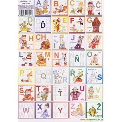 Jana Potůčková Formát 32x44 cm (asi 2xA4) Vazba: křídový karton Hra je určena předškolákům a dětem v první třídě ZŠ a pomáhá při zapamatování písmen abecedy. Hra je sestavena z 2x32 kartiček s obrázkem a písmenkem (ke každému písmenu abecedy je vždy jeden obrázek)