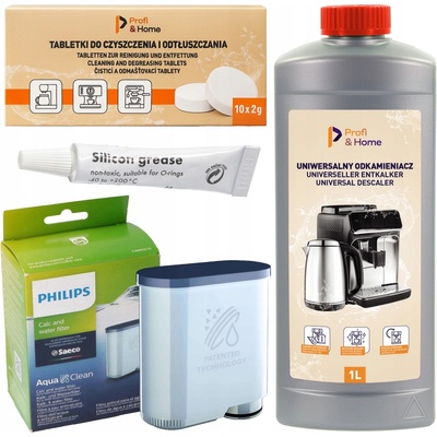 Sada pro kávovar Saeco Philips Filtr AquaClean CA6903/00 + Odvápňovač 1 l + Čisticí odmašťovací tablety + Mazivo 6 g ⭐Filtr vody Philips CA6903/00 Originál - 1 Ks ⭐Tekutý odvápňovač Profi&Home 1L – 1 Ks. ⭐Tablety 2v1 čistící a odmašťovací Profi&Home 2g - 10 Ks ⭐...
