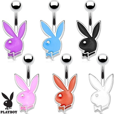 Piercing do pupíku z chirurgické oceli, hlava zajíčka Playboy, barevná glazura, lesklé linie.