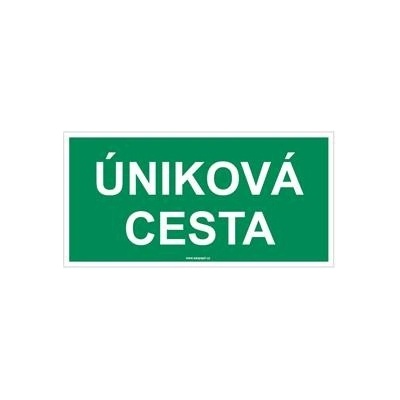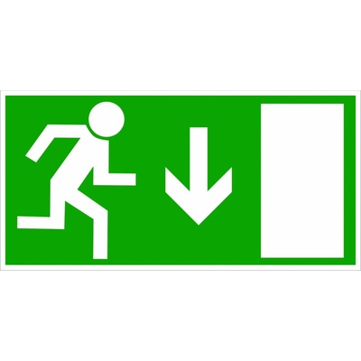 Bezpečnostní tabulka. Účelem je informovat o únikovém východě.