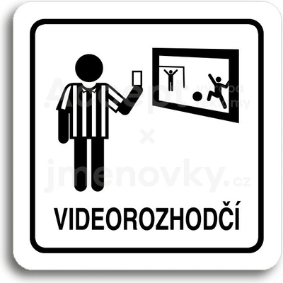 Piktogram videorozhodčí je vyroben technologií tepelně chemického tisku na hliníkovou tabulku. Díky speciálnímu chemickému složení je výsledný tisk odolný proti poškrábání....