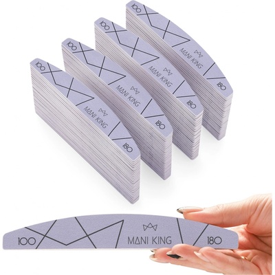 pilník na nehty 100 180 Půlměsíc Loďka Oboustranný Mani King 100ks Jednorázový pilník ve tvaru půlměsíce Mani King je velmi oblíbený u stylistek. Svou popularitu si získal díky...