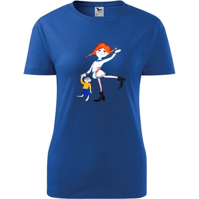 Modré dámské tričko Pipi Dlouhá Punčocha. nabízené velikosti jsou S,M,L,XL,XXL. Výběr z 12ti barev. Tričko patří do kategorií . Technologie potisku: Tisk na tričko je realizován...