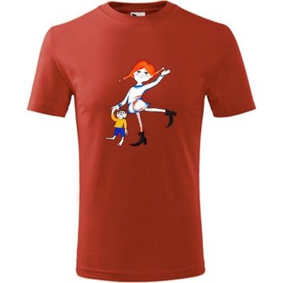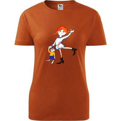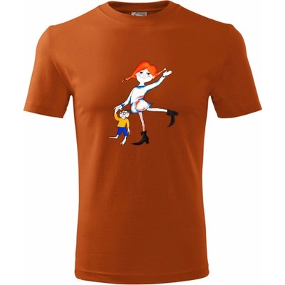 Oranžové dámské tričko Pipi Dlouhá Punčocha. nabízené velikosti jsou S,M,L,XL,XXL. Výběr z 12ti barev. Tričko patří do kategorií . Technologie potisku: Tisk na tričko je...