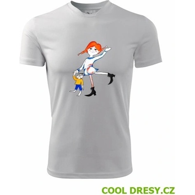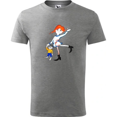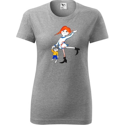 Šedé dámské tričko Pipi Dlouhá Punčocha. nabízené velikosti jsou S,M,L,XL,XXL. Výběr z 12ti barev. Tričko patří do kategorií . Technologie potisku: Tisk na tričko je realizován...
