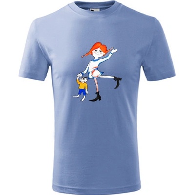Nebesky modré dětské tričko Pipi Dlouhá Punčocha. nabízené velikosti jsou 4 roky, 6 let, 8 let, 10 let, 12 let. Výběr z 13ti barev. Tričko patří do kategorií . Technologie...