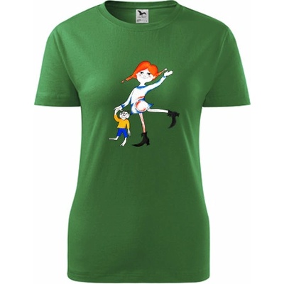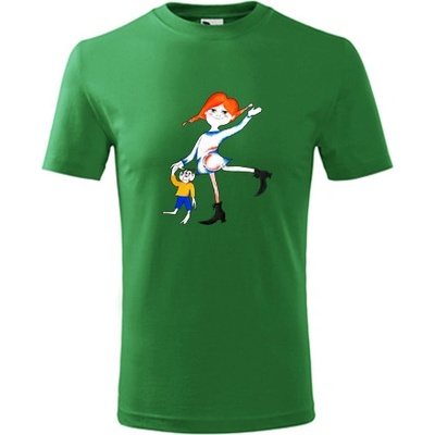Zelené dámské tričko Pipi Dlouhá Punčocha. nabízené velikosti jsou S,M,L,XL,XXL. Výběr z 12ti barev. Tričko patří do kategorií . Technologie potisku: Tisk na tričko je...